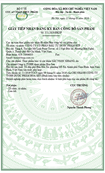 | Hạn sử dụng | 3 năm kể từ NSX |