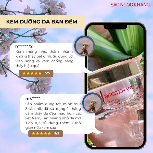 Ngoài ra, điểm cộng thêm cho Kem Dưỡng Da Ban Đêm Sắc Ngọc Khang là kết cấu gel mát lạnh, có khả năng thẩm thấu nhanh và tan ngay tức thì trên da, kết hợp với hương thơm nhẹ nhàng, cho bạn cảm giác đầy thư thái.