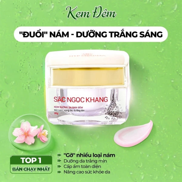 Kem dưỡng Da Ban Đêm Sắc Ngọc Khang dành cho da mặt vào ban đêm chính là một “chiến binh” mà bạn đang tìm kiếm để tạm biệt nám sạm, tàn nhang, da xỉn màu. Sản phẩm nghiên cứu dành chuyên cho da mặt vào ban đêm với thành phần gồm các nguyên liệu đặc biệt như: