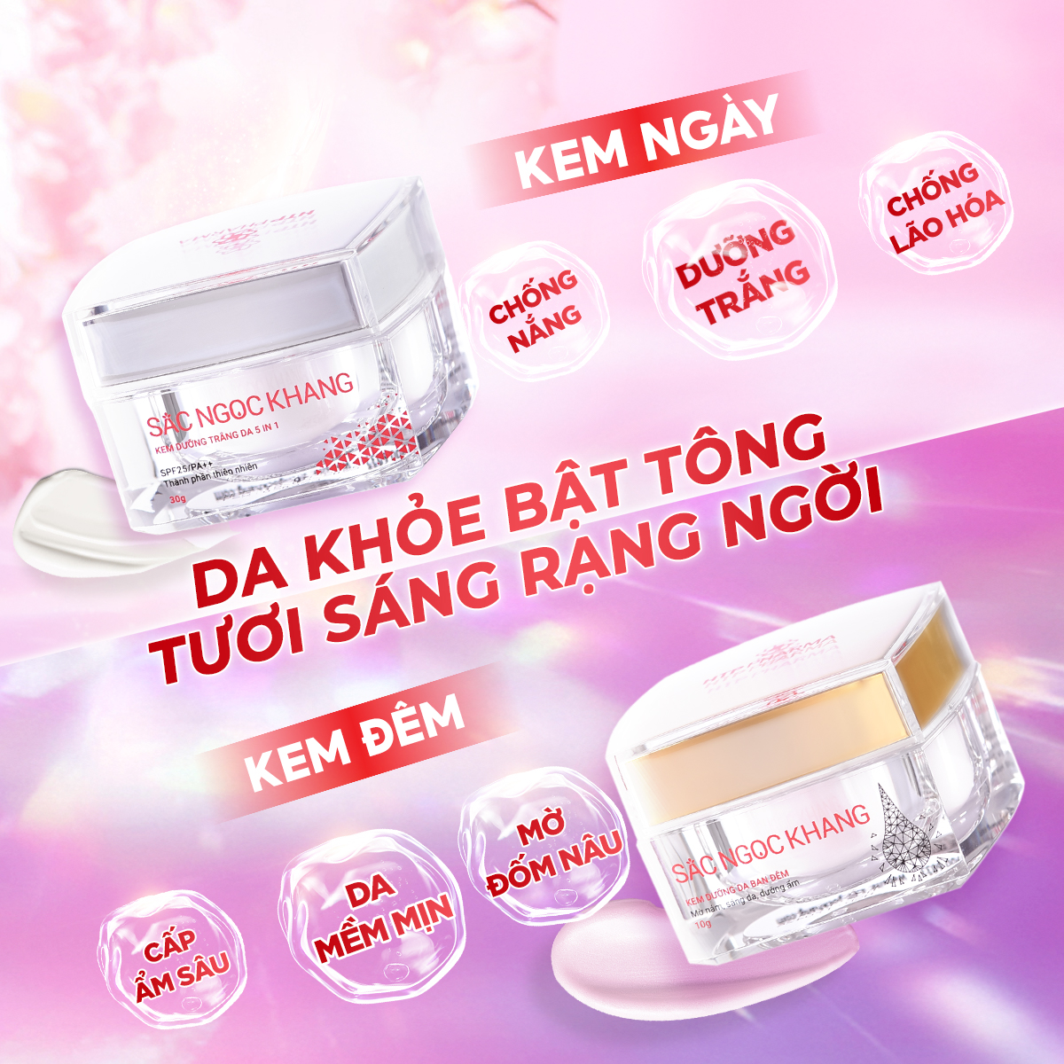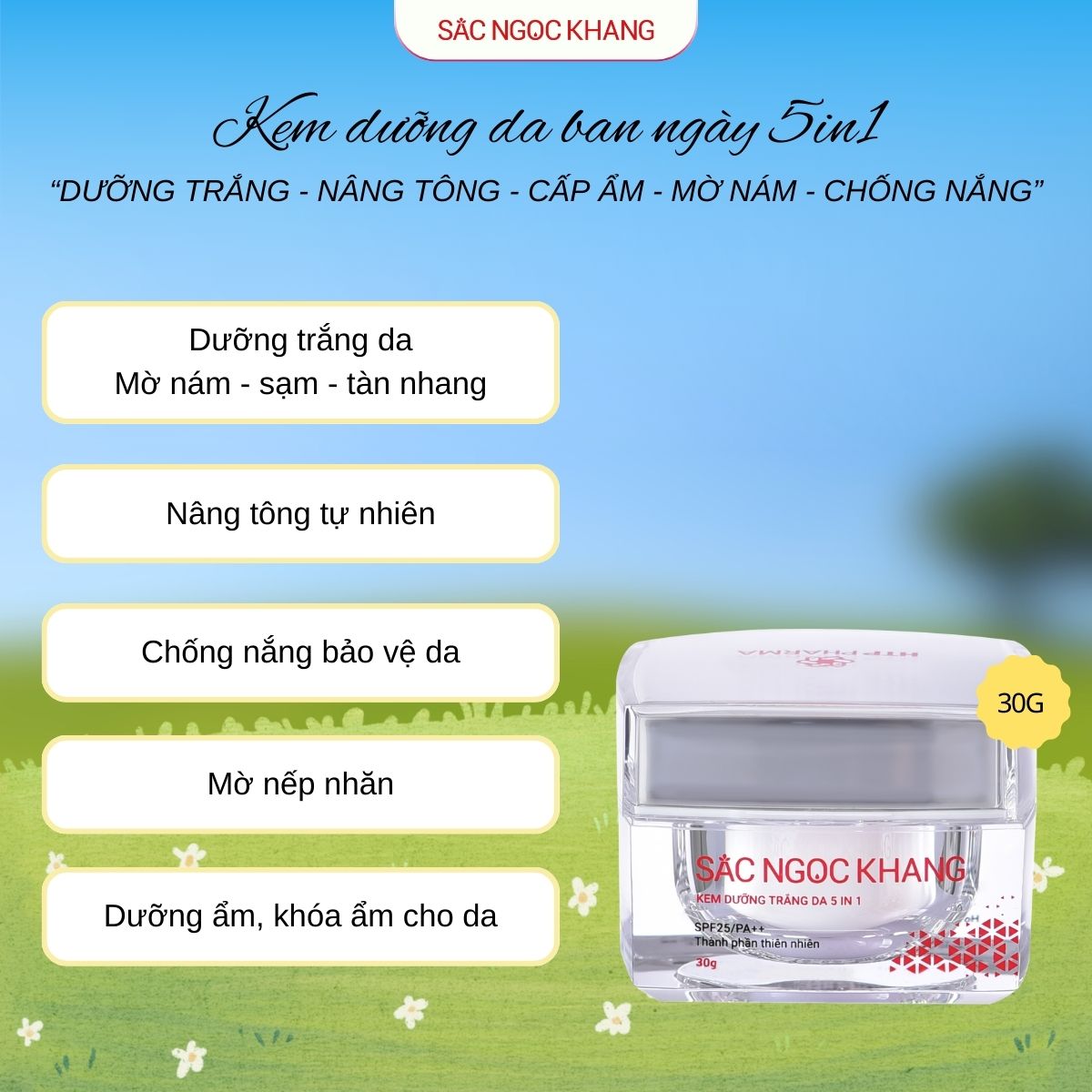 Kem Dưỡng Trắng Da 5 In 1 Sắc Ngọc Khang sẽ chính là "chân ái" tối ưu hóa thời gian dưỡng da, trang điểm dành cho bạn bởi tích hợp 5 tính năng ưu Việt: