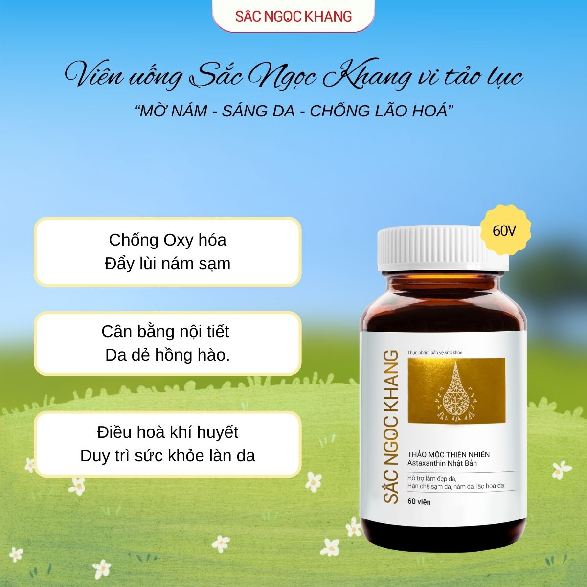 | Thành phần chính | Astaxanthin, Isoflavones, L-Cystin, Bộ Tứ dược liệu |